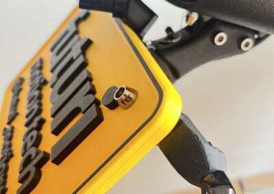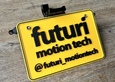 A custom license plate for when the bike will be photographed and displayed at shows.