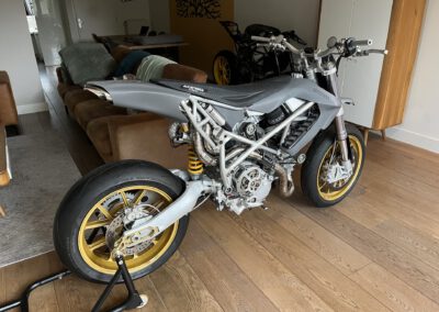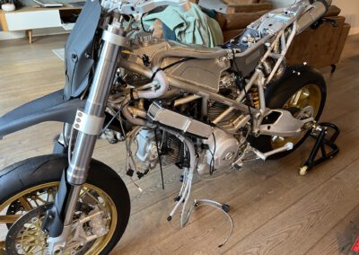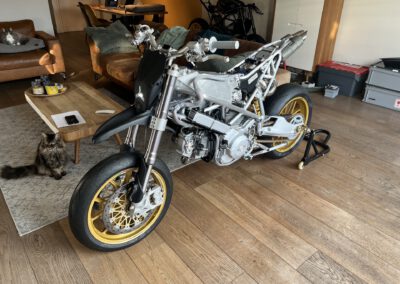A bike purely for me and my driving style (sliding into corners). Almost no comfort, just a raw machine. Simply ridiculous to ride! 2000+ hours to build over a time period of 5.5 years…