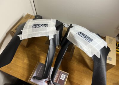 Time to start printing and painting the side and exhaust fairings, plus multiple other small parts. Converted my small workshop to a spray booth haha.