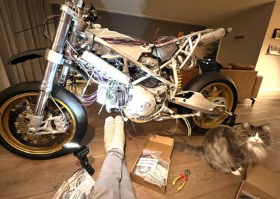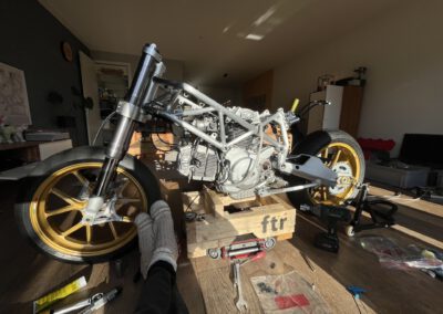 The final rebuild of the Ducati Desmoto has begun 🔥!! Calm and easy does it, rebuilding in my living room… 13 days until firing it up for the first time… Full throttle is “F*ck it” I am losing my license…