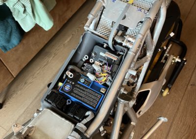 The wiring loom is also finished. I didn’t make it easy on myself designing a battery box so small. Really took allot of time to get everything as slim as possible but also looking good.