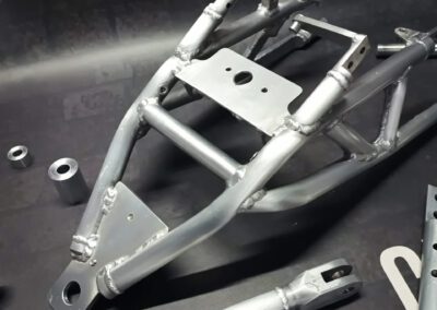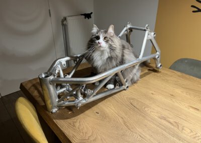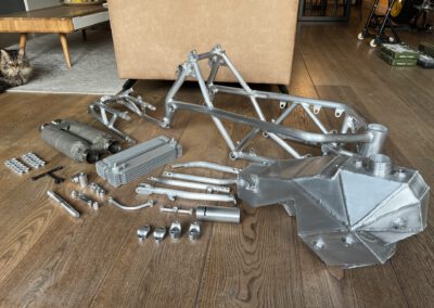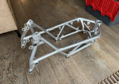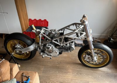 It is a custom made aluminium chassis weighing just 4.2kG, 1 of 15 ever made by the no longer operating company Ducati Radical France.  Loosely based on a Ducati 999 originally but heavily modified by myself.