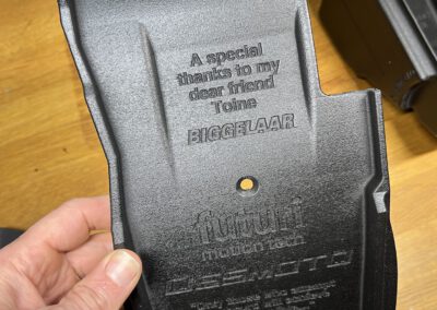 All the fairings you see on the Ducati Desmoto project are 3D printed out of Nylon Carbon Fiber (PA12/HT-CF). This material is extremely heat resistant (up to 195C) and can easily withstand the heat from the exhaust when combined with the right other materials.