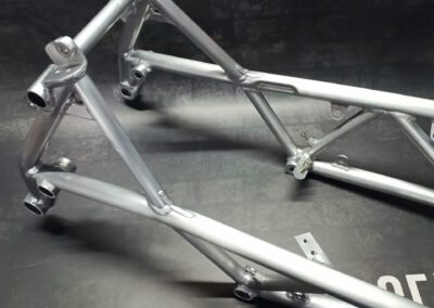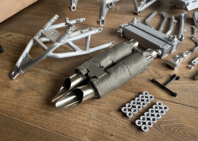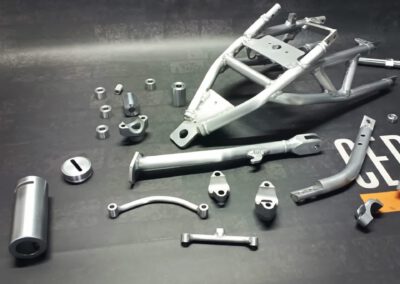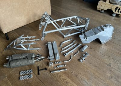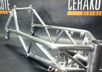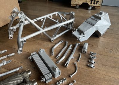 Literally every aluminium part is brushed and will be coated with clear Cerakote. To keep the bare raw aluminium look of the bike.