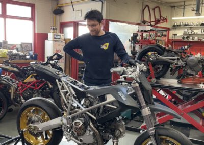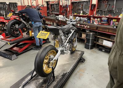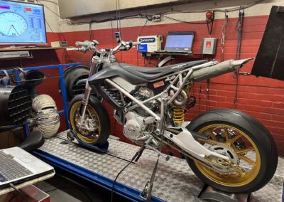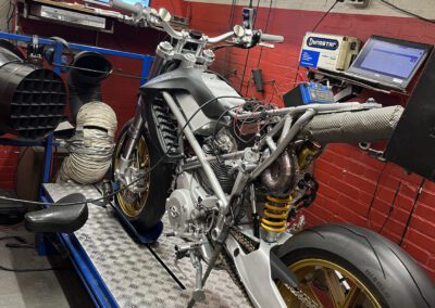 Running in the Ducati Desmoto on the dyno for the first 100km. Max 30% throttle… Checking surface temperatures etc. Yes it gets hot, but all good and manageable so far!!