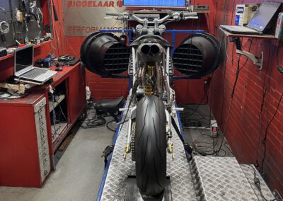 After achieving these performance numbers I tuned the bike back slightly to keep the service intervals manageable, keep everything a bit more reliable and be able to use regular 98 pump gas. Currently it is running 104HP and 119NM on the rear wheel. More than enough!